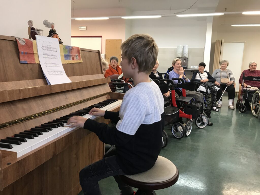 Je neděle 3. prosince a my s dětmi zahajujeme novou tradici – minikoncerty v Domově seniorů Novovysočanská. A máme z toho radost nejen my, ale všechny babičky i dědečkové! 🙂